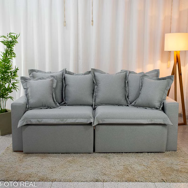 Informamos que é normal haver uma abertura entre os módulos dos sofás retráteis. Essa abertura é necessária para evitar atrito entre os módulos durante o movimento de abrir e fechar, prevenindo o desgaste do tecido.