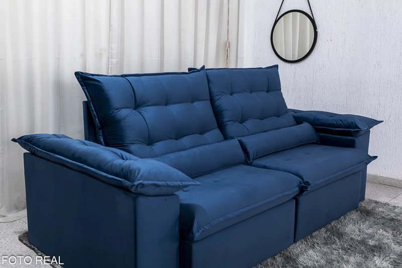 Sofá Retrátil Reclinável Emanuelly 2.00m Veludo Azul 03 D28 Soft