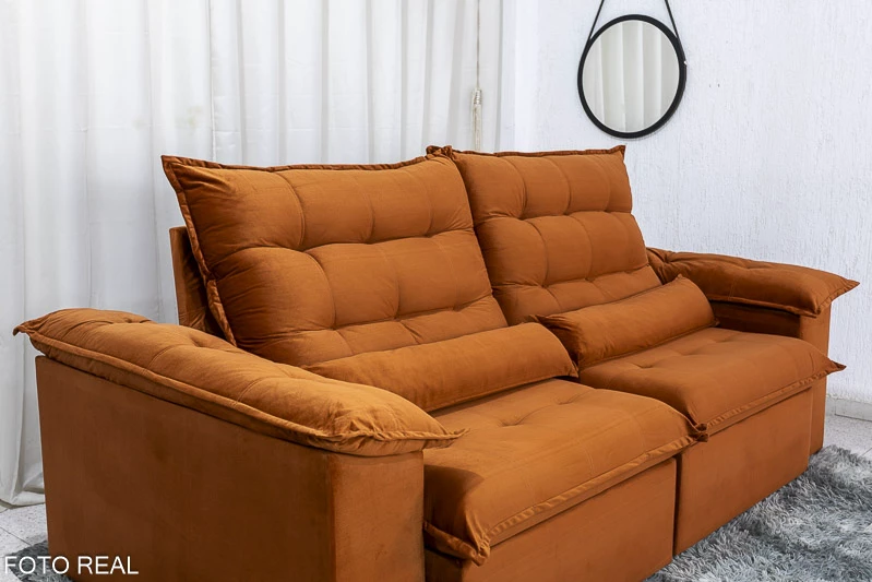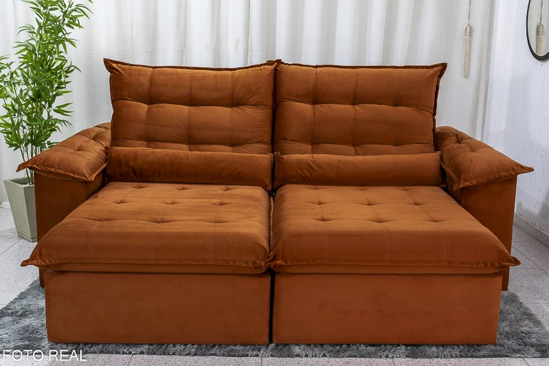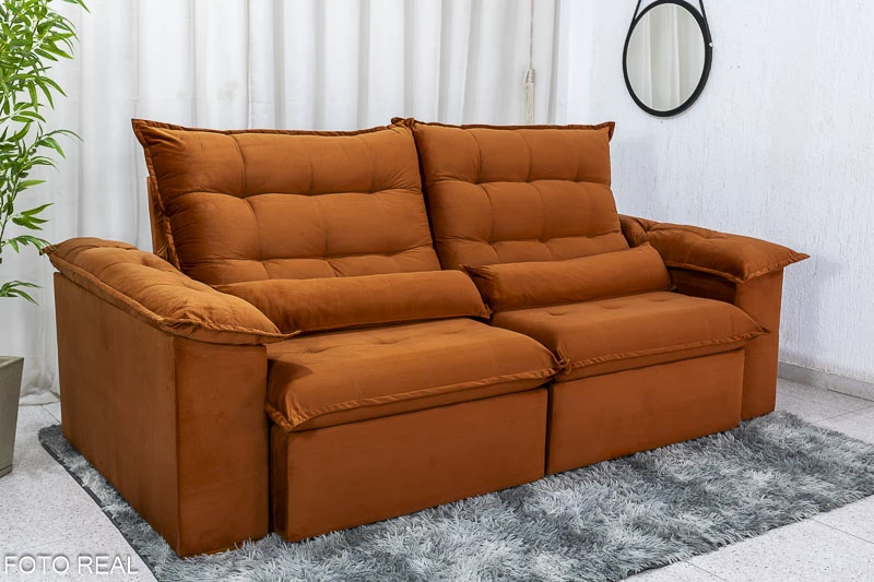 Sofá Retrátil Reclinável Emanuelly 2.00m Veludo Terracota 24 – D28 Soft e Molas bonnel