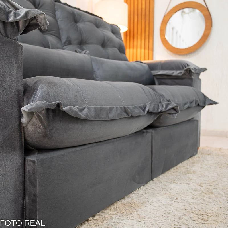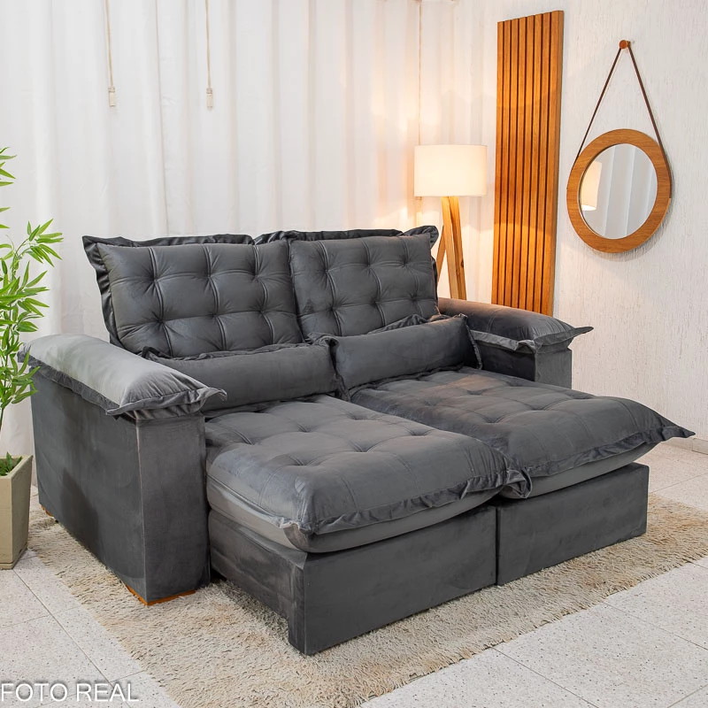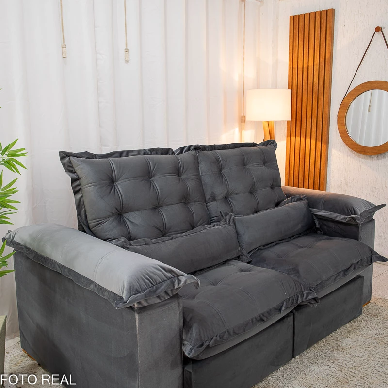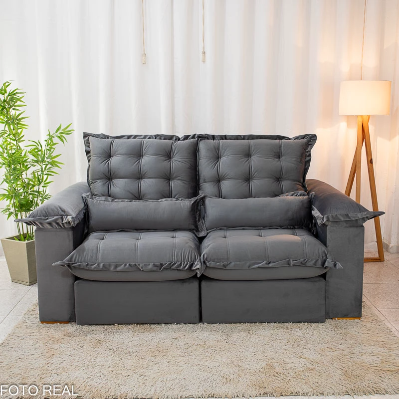 Sofá Retrátil Reclinável Maldivas 2.10m Veludo Grafite A15 – D28 Pró Aditivada