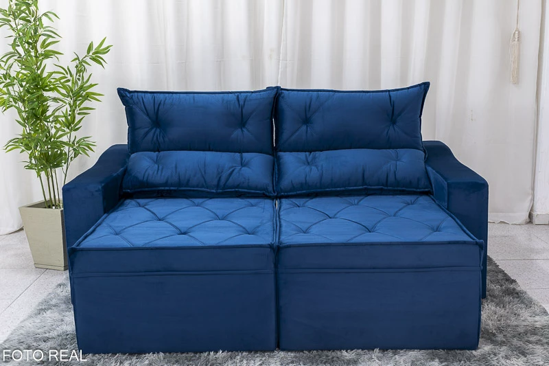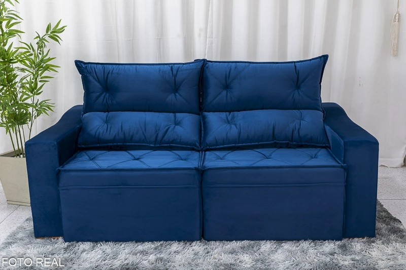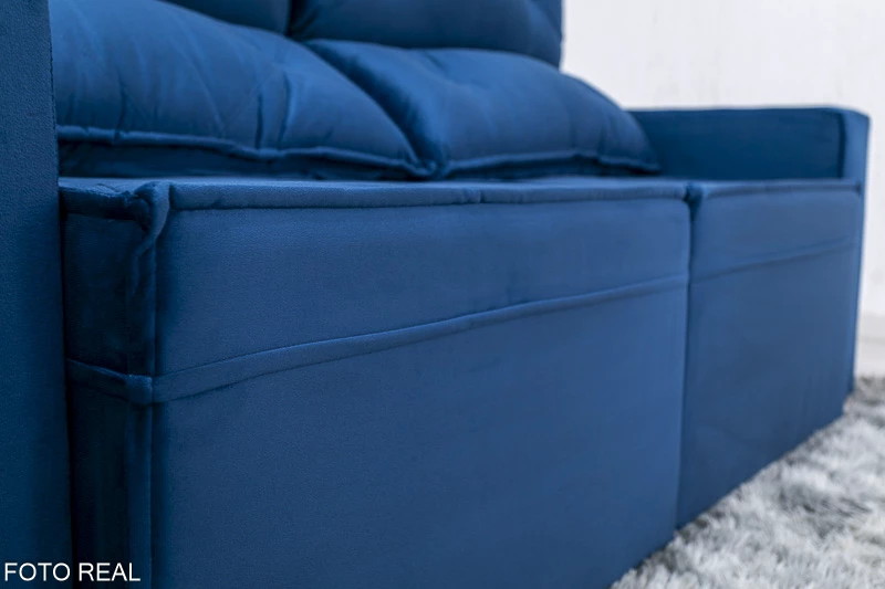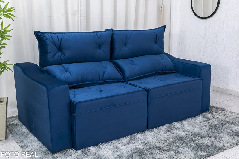 Sofá Retrátil Reclinável Moscou 2.00m Veludo Azul A16