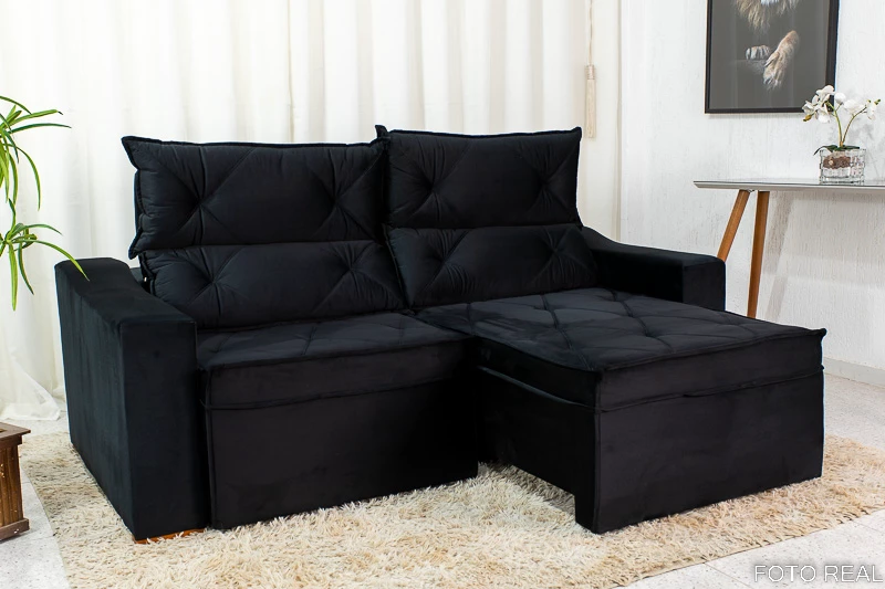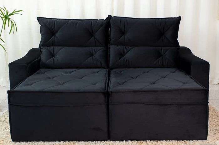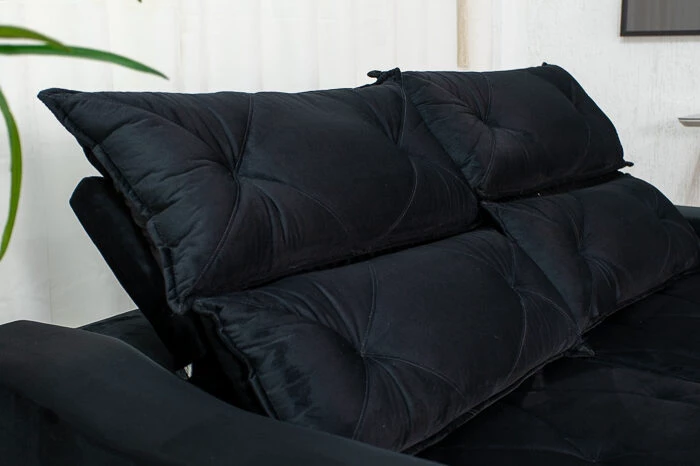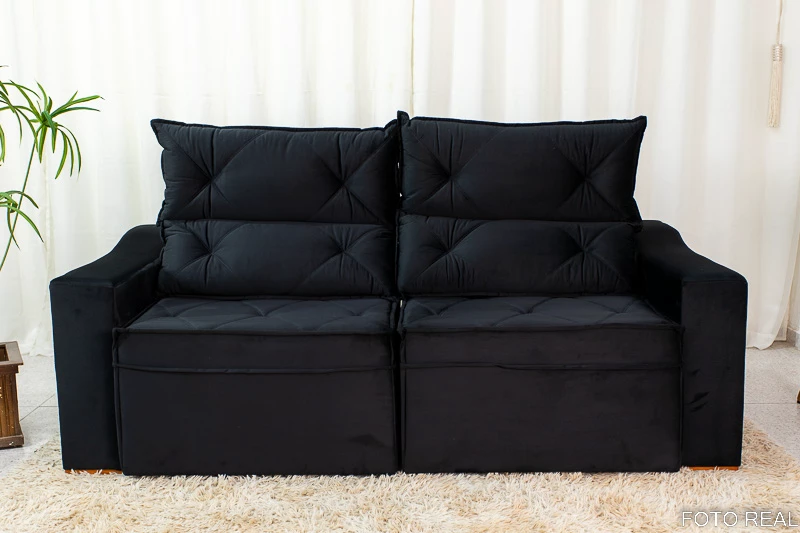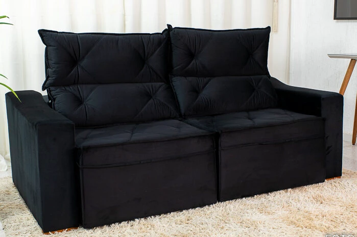 Sofá Retrátil Reclinável Moscou 2.00m Veludo Preto A14