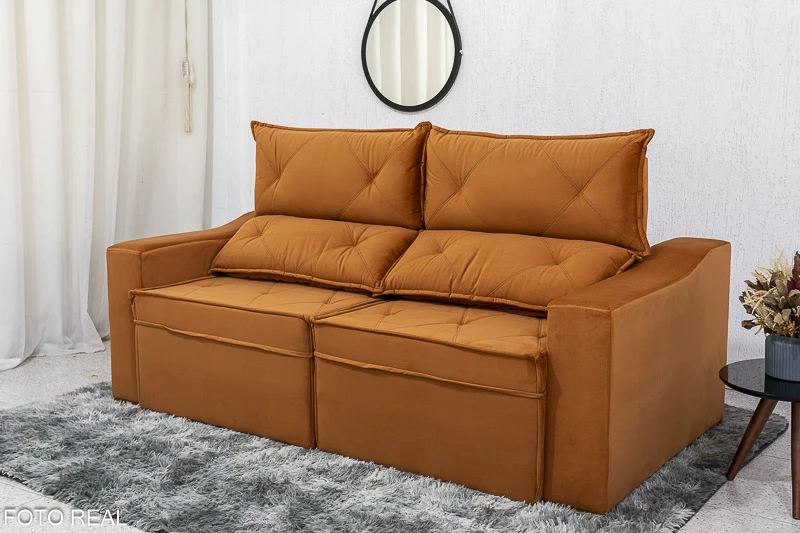 Sofá Retrátil Reclinável Moscou 2.00m Veludo Terracota A62