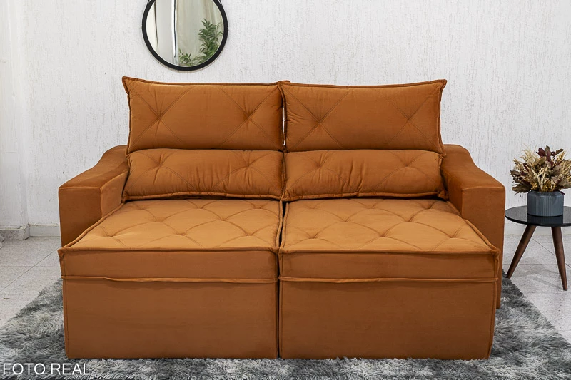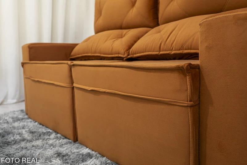 Atenção: Informamos que é normal haver uma abertura entre os módulos dos sofás retráteis. Essa abertura é necessária para evitar atrito entre os módulos durante o movimento de abrir e fechar, prevenindo o desgaste do tecido.