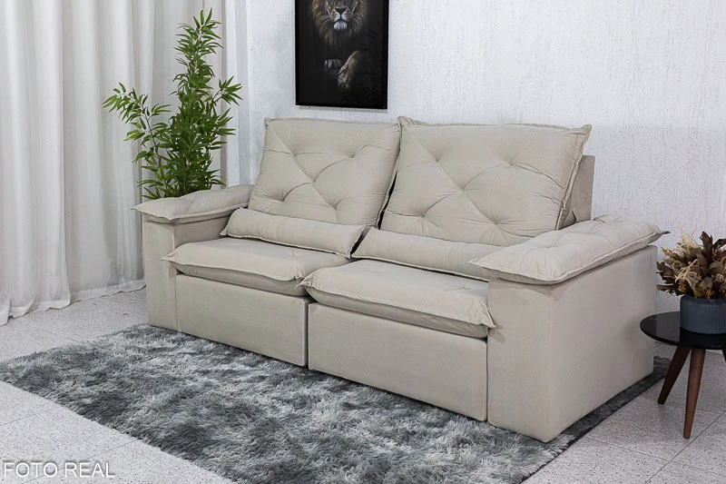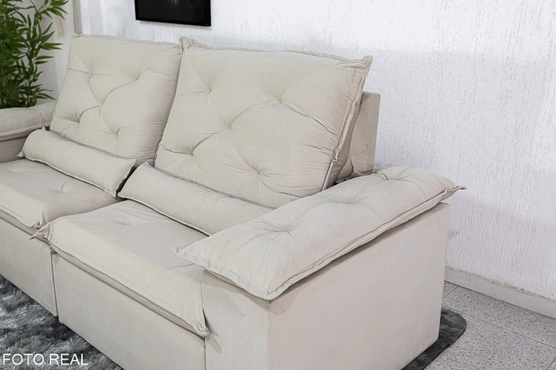 Sofá Retrátil Reclinável Roma 2.00m Veludo Bege 01 – D28 Soft