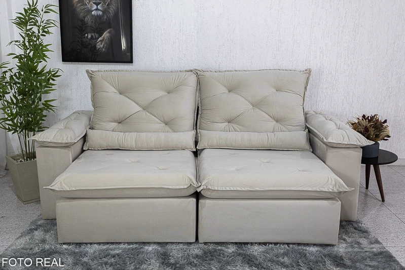 Atenção: Informamos que é normal haver uma abertura entre os módulos dos sofás retráteis. Essa abertura é necessária para evitar atrito entre os módulos durante o movimento de abrir e fechar, prevenindo o desgaste do tecido.